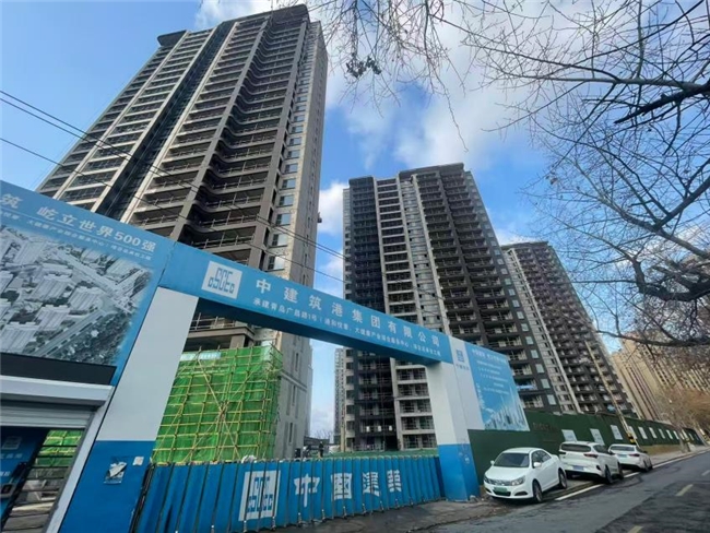 落日的朝霞为临沂市高端食物财产园项目标混凝土框架镀上一层金边。